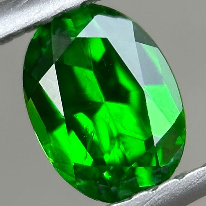 ロシア産のデマントイドガーネット。ポルドネヴァヤ鉱山で採掘された一石です。絶妙なホーステイルの入り方は全体の透明感を邪魔することなく、ビビッドかつ濃厚で、とろみのある発色の良いグリーンです。オーバル5.8x4.3mmという、ジュエリー加工にも適したサイズで非常に高品質な一石。