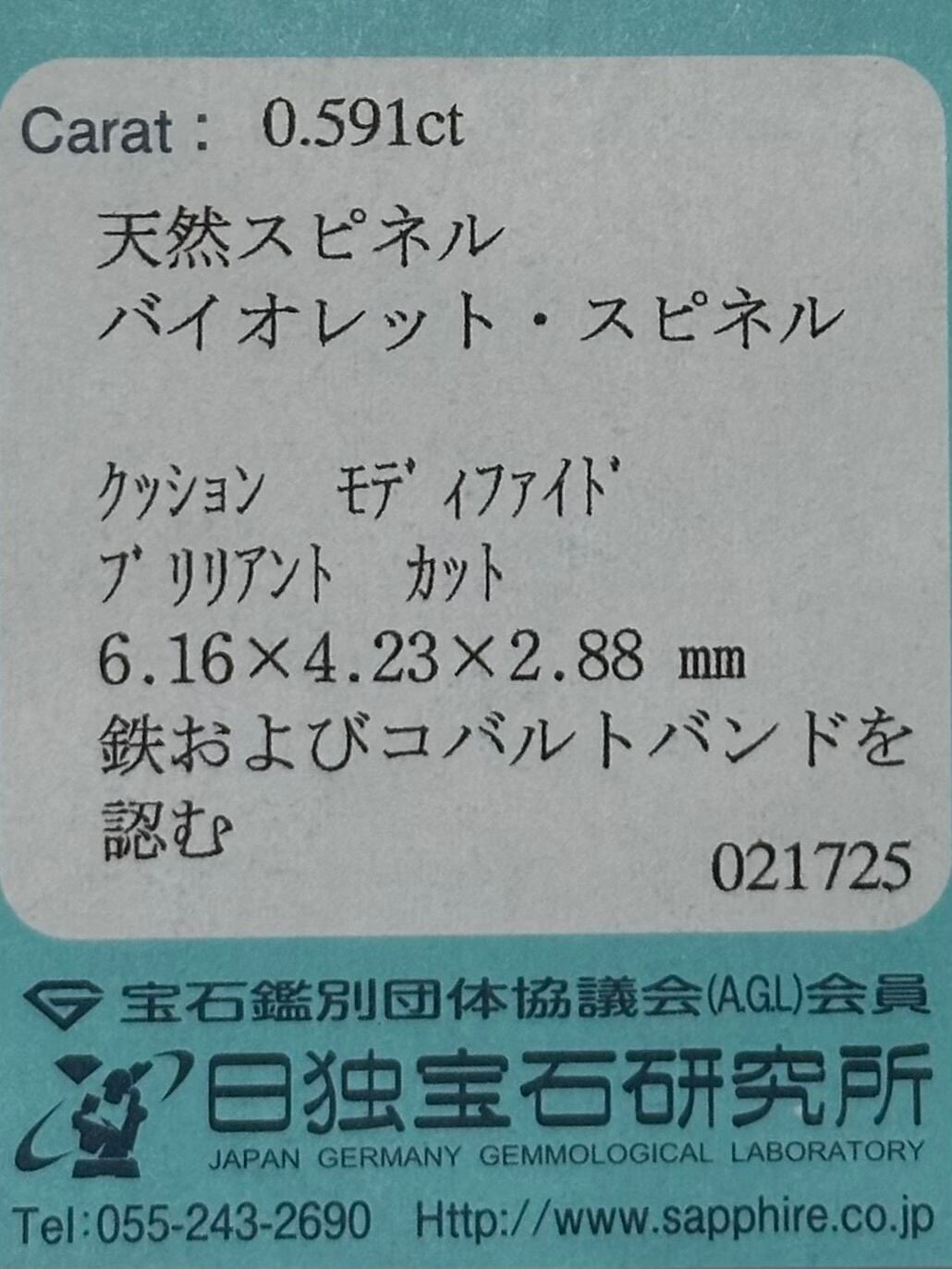 ※ 日独宝石研究所ソーティングつき(鉄およびコバルトバンドを認む)