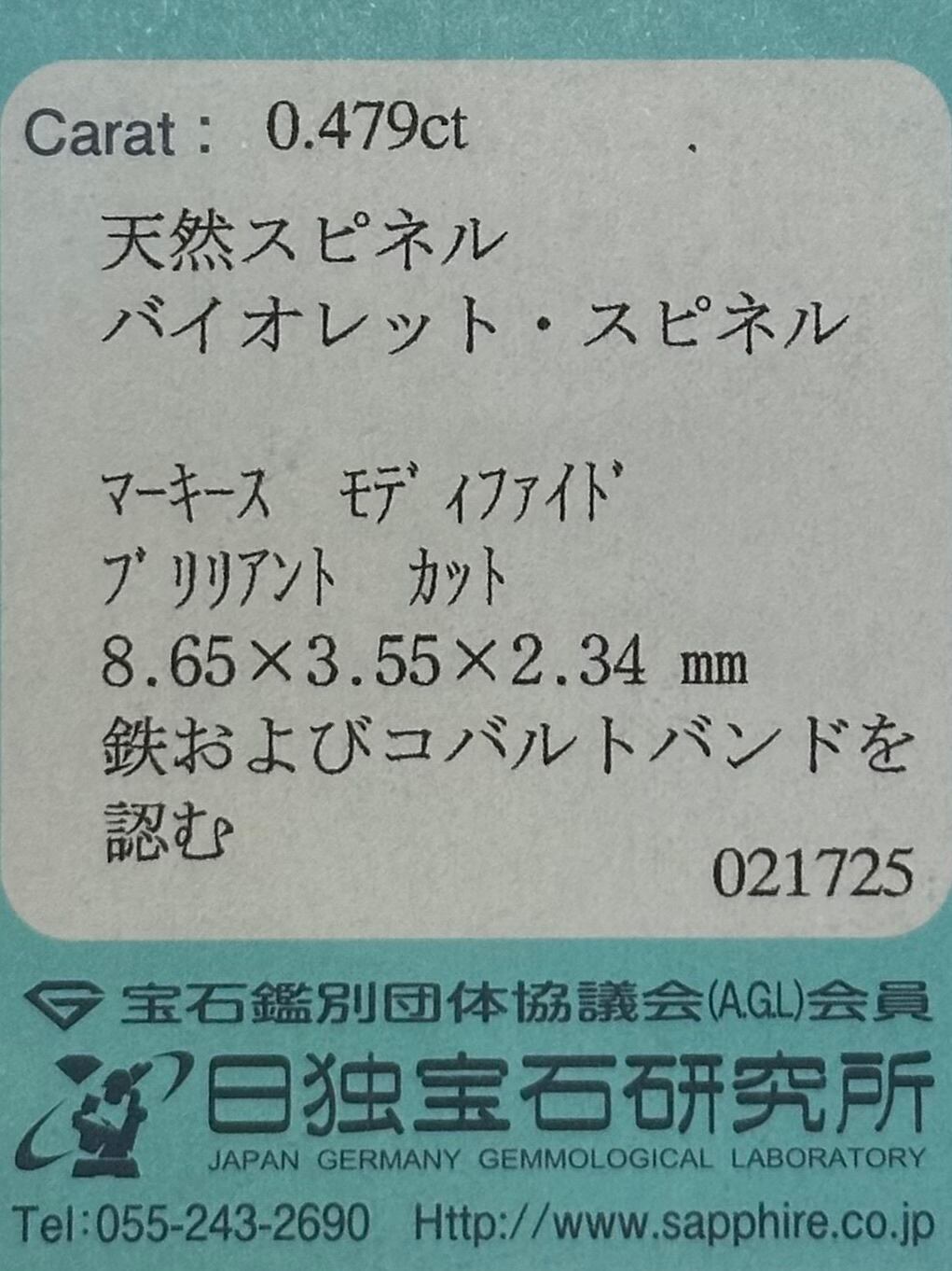 ※ 日独宝石研究所ソーティングつき(鉄およびコバルトバンドを認む)