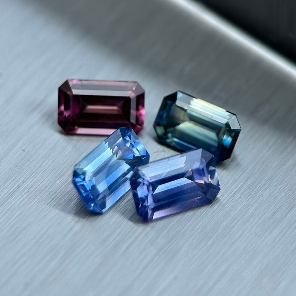 非加熱グラデーションカラーサファイア エメラルドカット 5.5x3.5mm, 0.46ct, スリランカ産