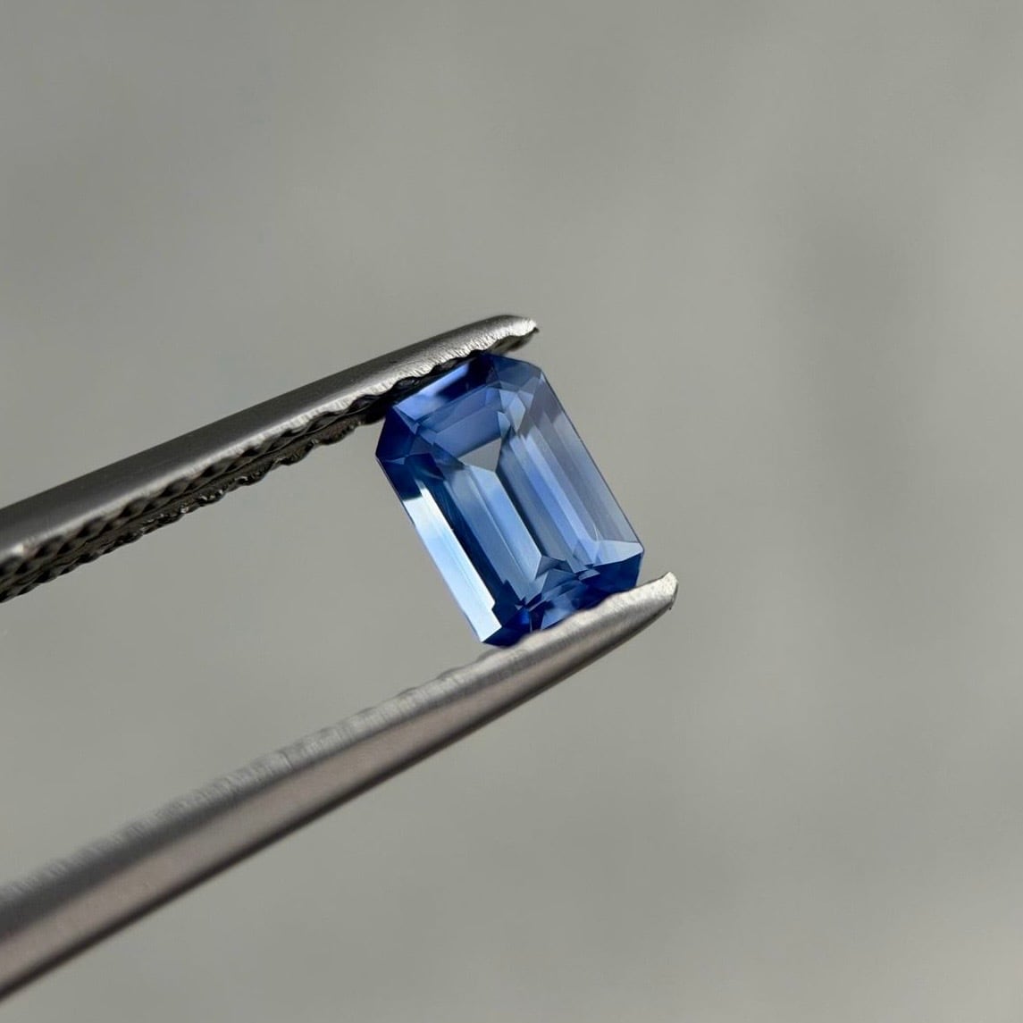 緩やかなゾーニングが実に美しい、グラデーションカラーのサファイア。ルーペクリーンです(写真1-3枚目は室内、4枚目は自然光での撮影)
