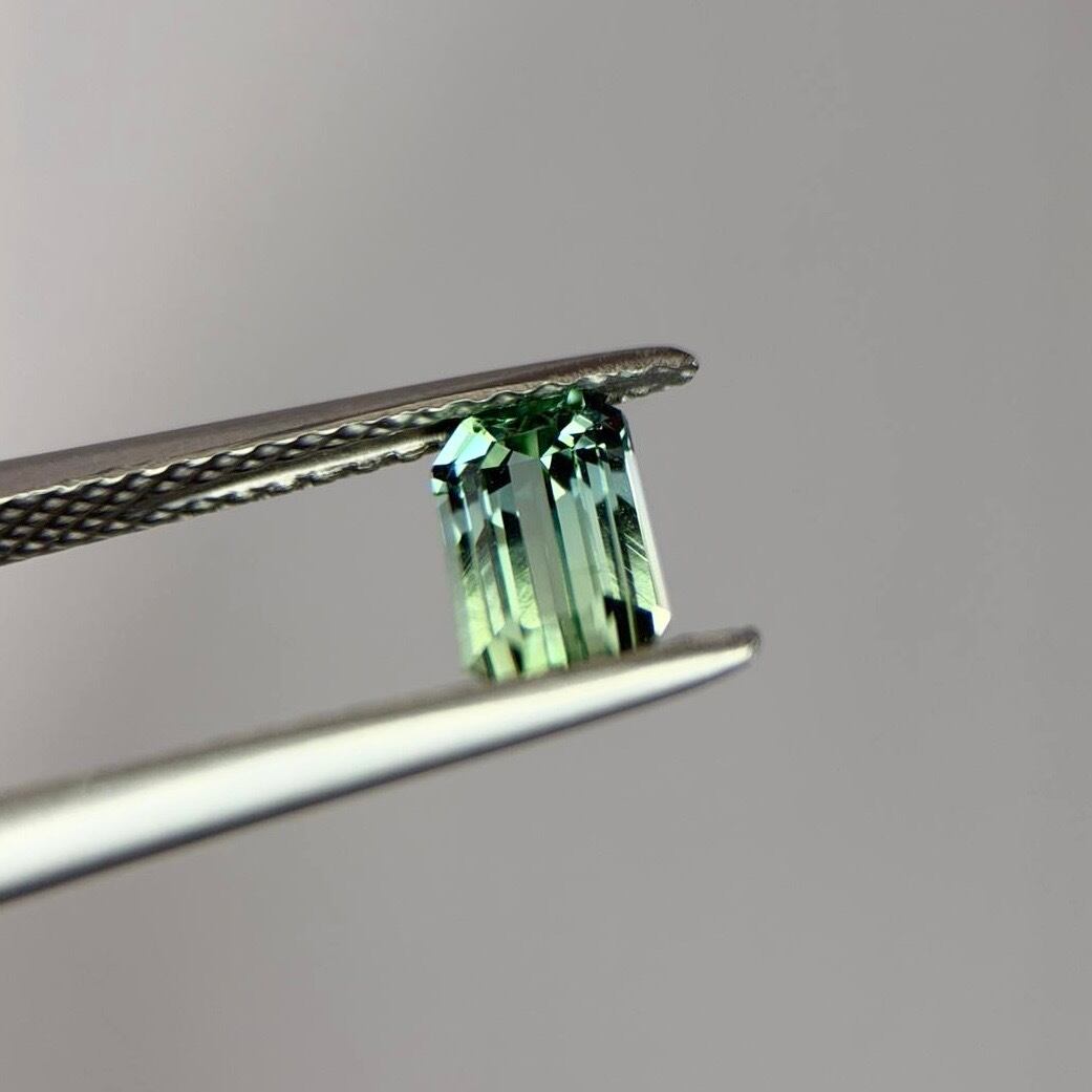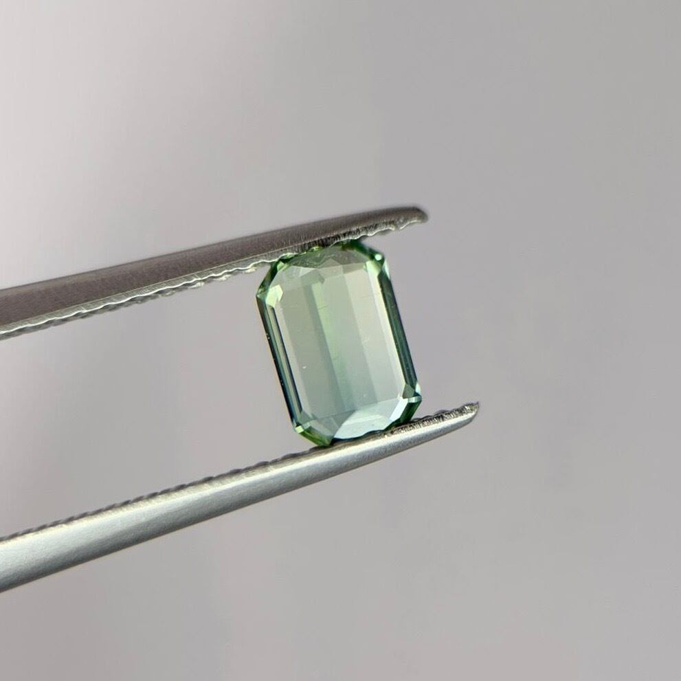 腕利きカッターに仕上げていただいた、エメラルドカットのアフガニスタン産トルマリン。ラグーンカラーとシーフォームカラーのグラデーションが魅力的です。ルーペクリーンに近いアイクリーンで、透明度が高く発色の良いピースです。ぜひ動画もご覧ください。