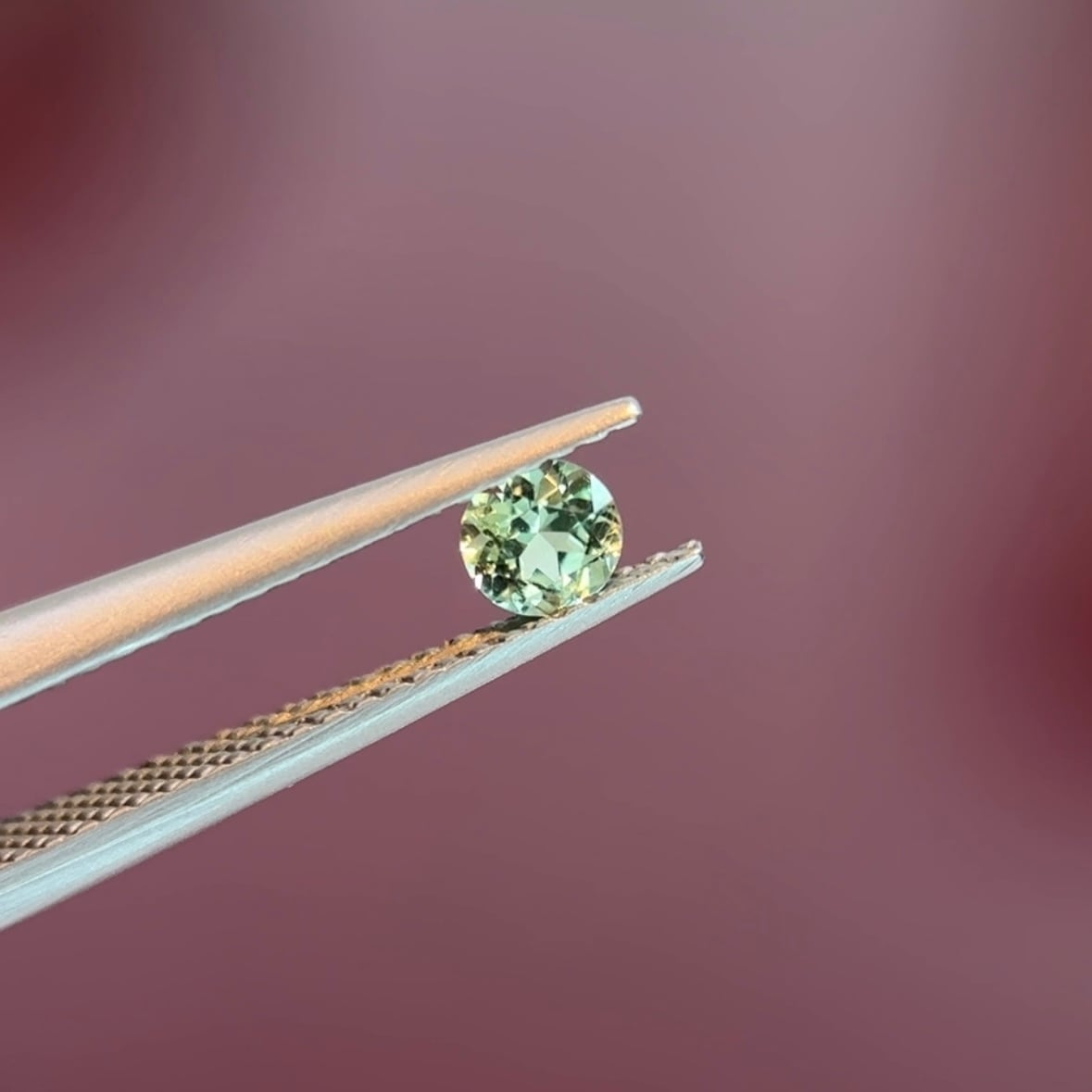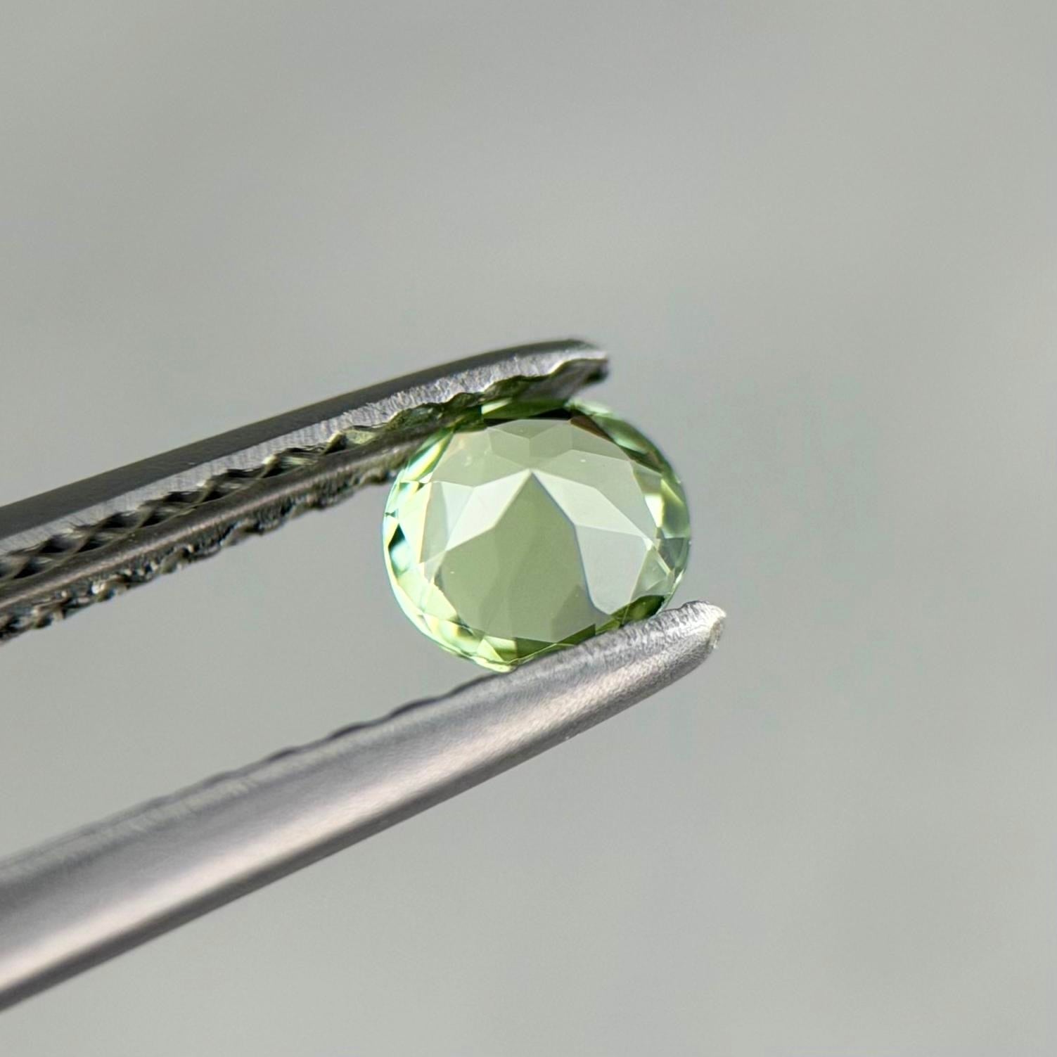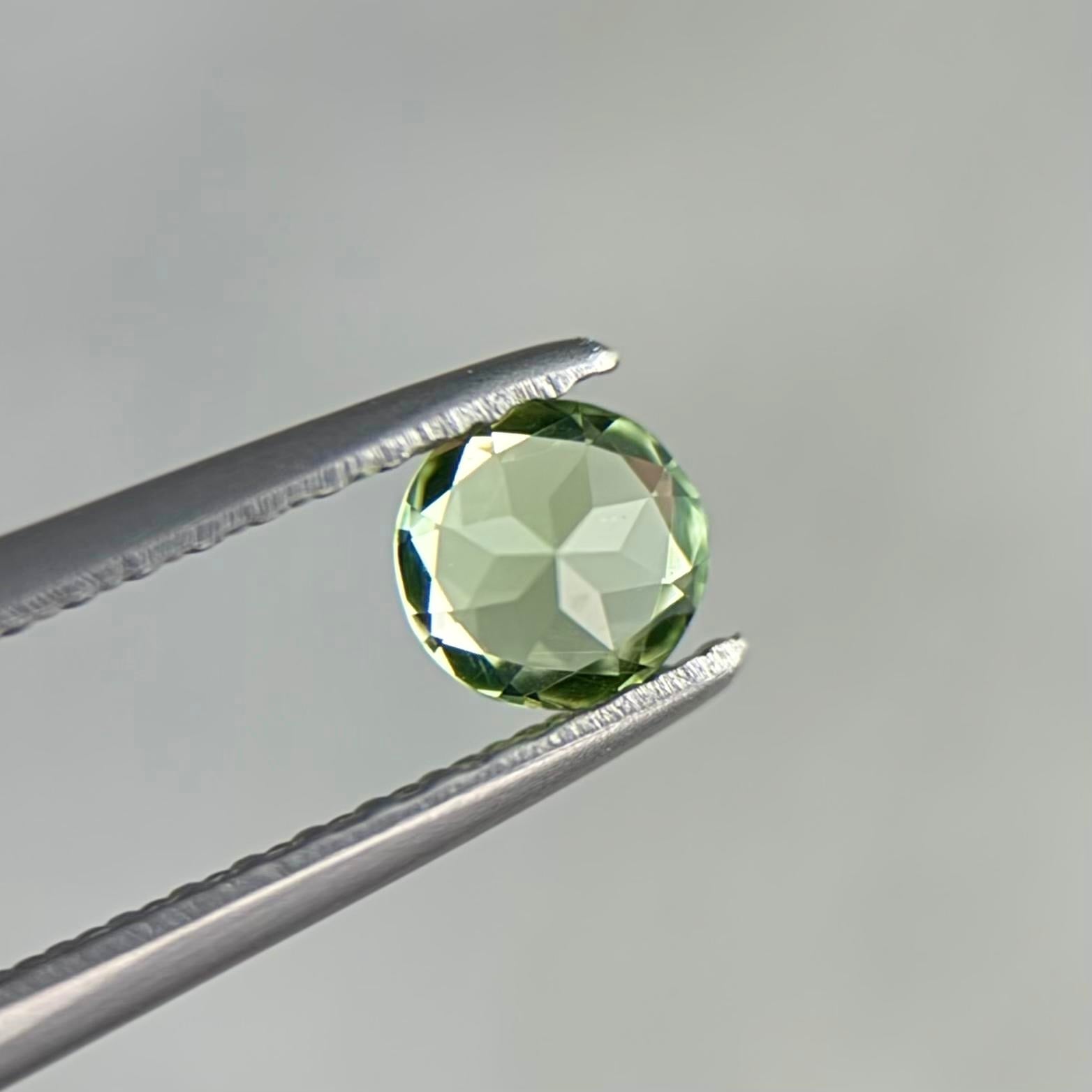 ネオン感が垣間見られる、ミントグリーンのタンザニア産ガーネット。素材のポテンシャルが非常に高く、テリ艶の良いピースで、カッターにペアで仕上げていただいたうちの一石です。ぜひ動画もご覧ください。
