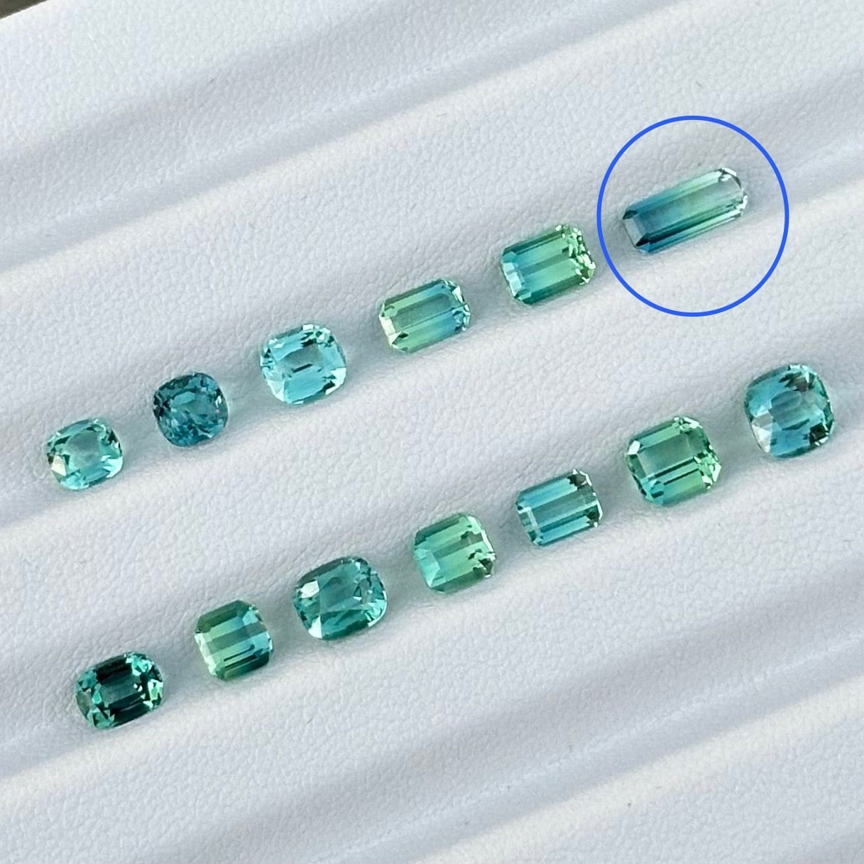 グラデーションカラーが魅力的な、腕利きカッターによるエメラルドカットのアフガニスタン産トルマリン。ルーペクリーンで、透明度が高く発色の良いピースです。