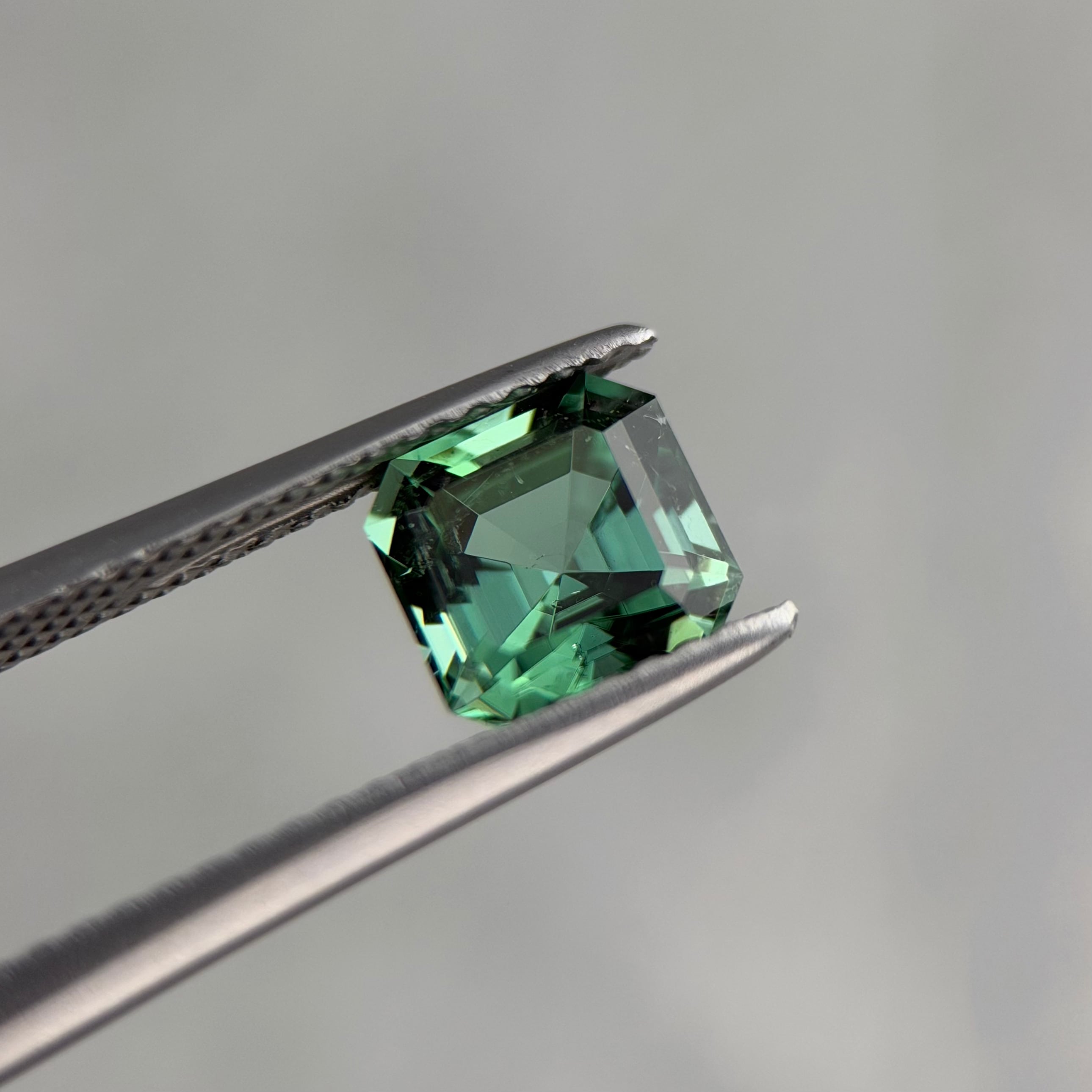 腕利きカッターにより仕上げられたブルーグリーン、アッシャーカットのナミビア産トルマリン。アイクリーンの一石です。 T-125252