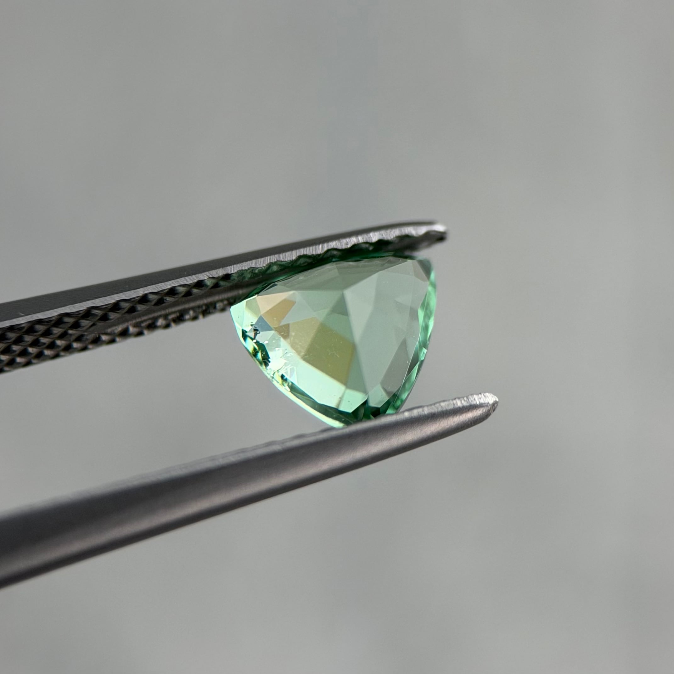 ナミビア産のミントトルマリン。腕利きカッターによる精度の高いカットで発色の良い一石。アイクリーンです。 T-825029