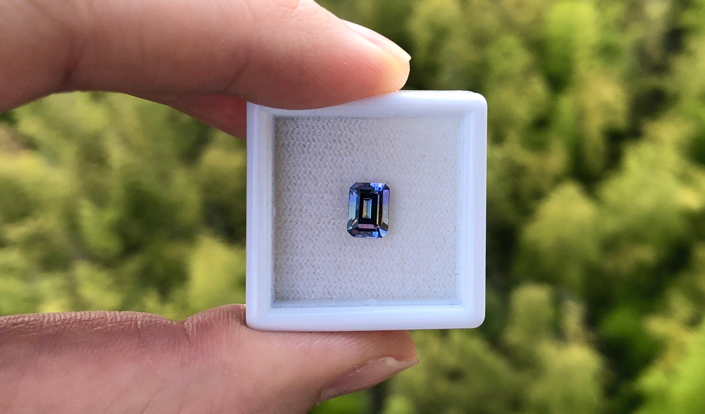 細いニードルがグラデーションの境目の部分に入っていて、とても興味深い風合いです。細いニードルはあるものの透明度は抜群で、肉眼で見る限りは隙のない宝石です。