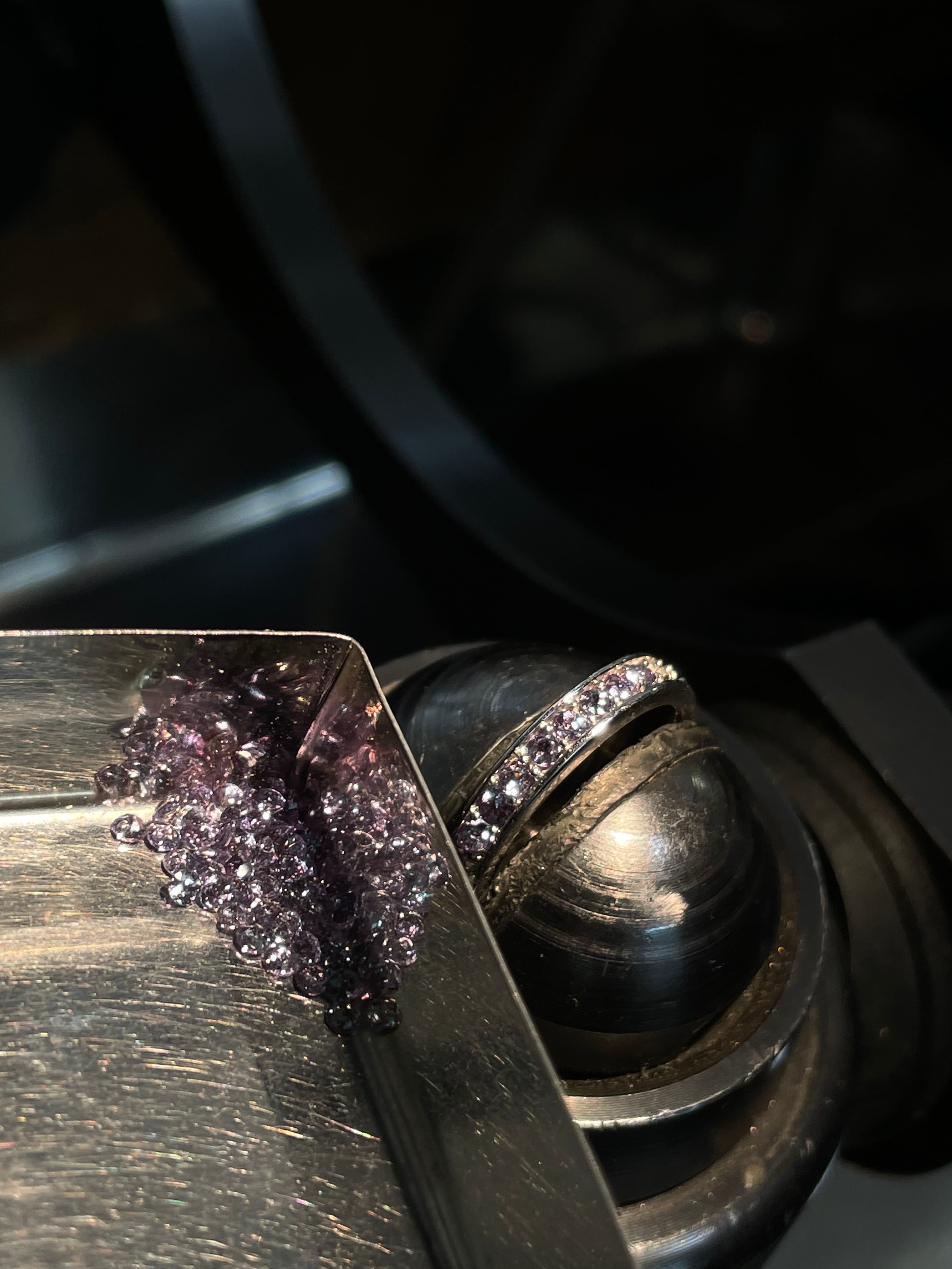 ※こちらはご予約品となります。 掲載写真は縁ありタイプですが、オーダー通り縁なしタイプにて加工いたします。 ブラジル産アレキサンドライト1.8-1.9mm : 13石 Pt900 12号 縁なしハーフエタニティリング
