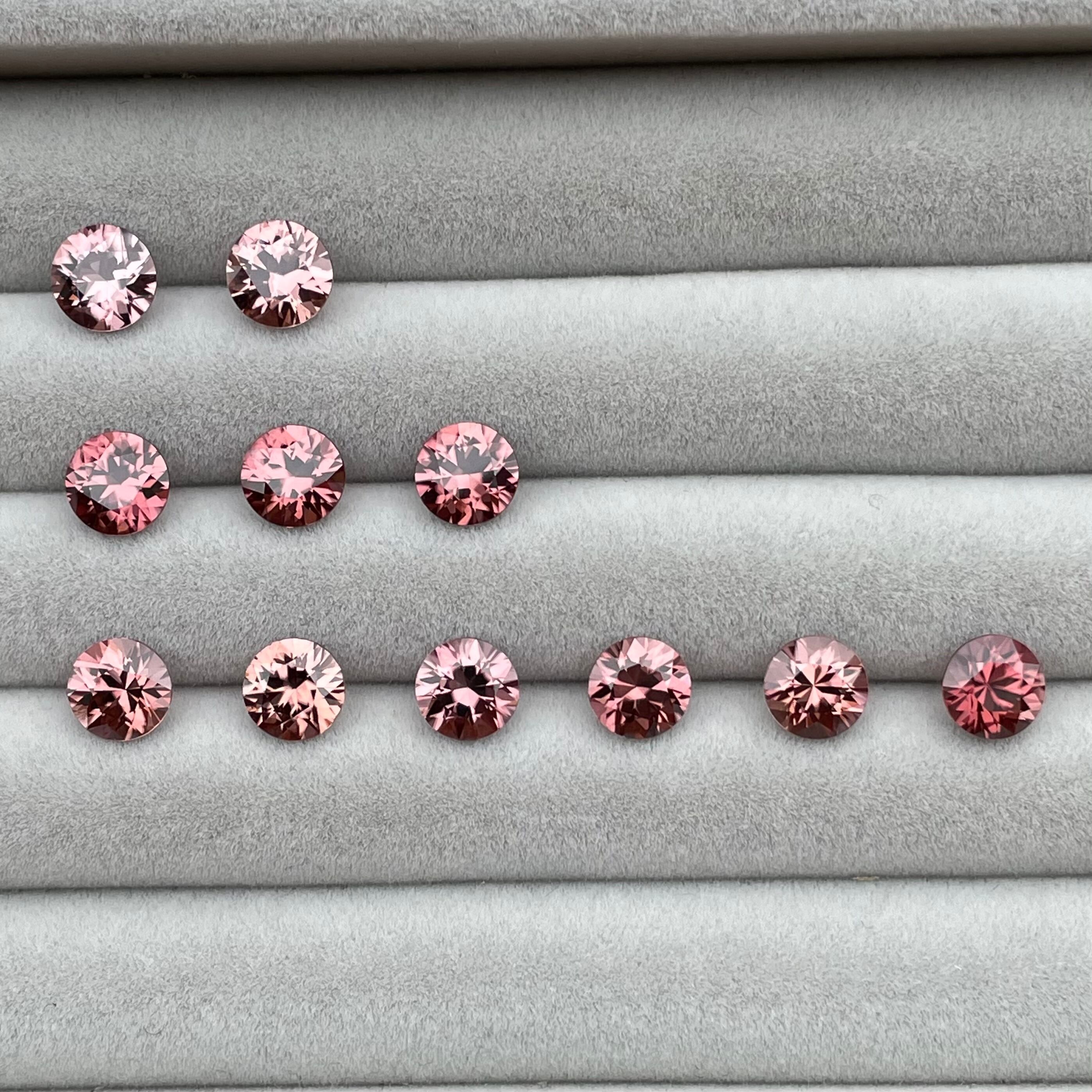 ダイヤモンドカットが美しい、タンザニア産のブラウニッシュピンクジルコン6.9mmサイズです。
